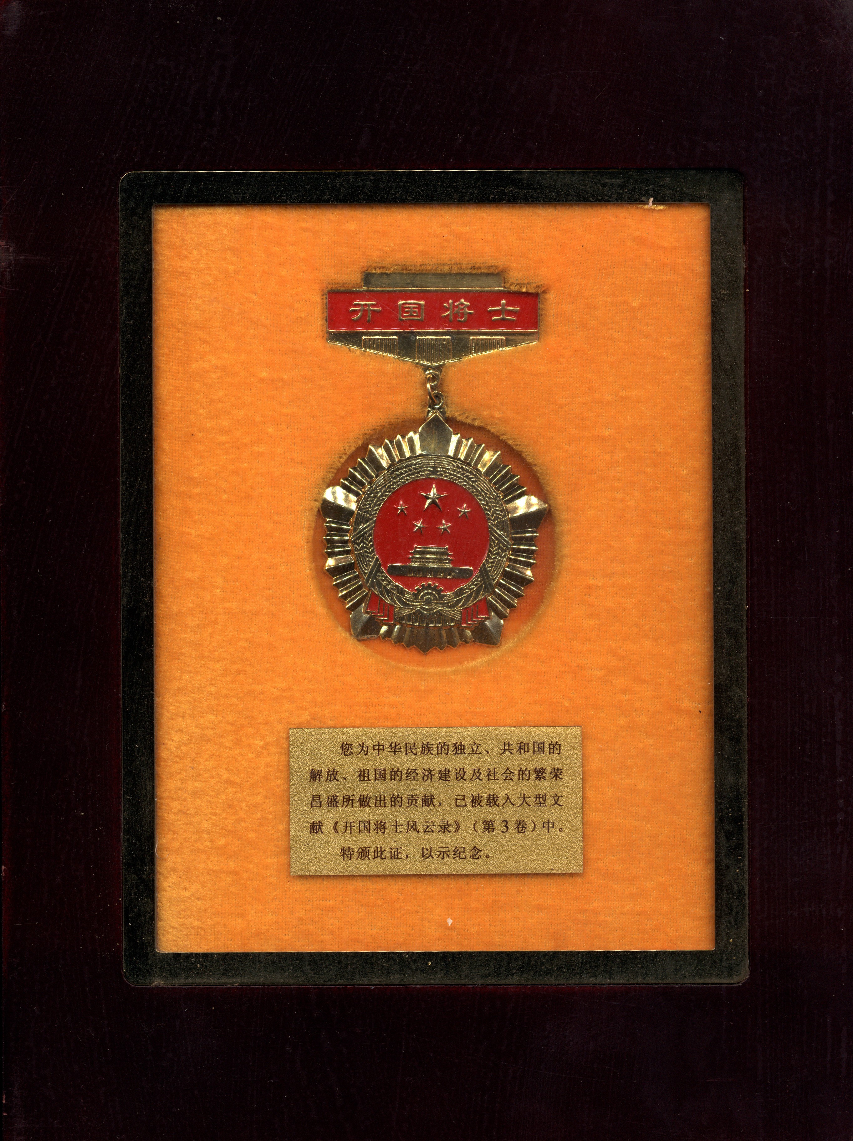 施平同志被载入大型文献《开国将士风云录》(第3卷)中,特颁此证,以示纪念。