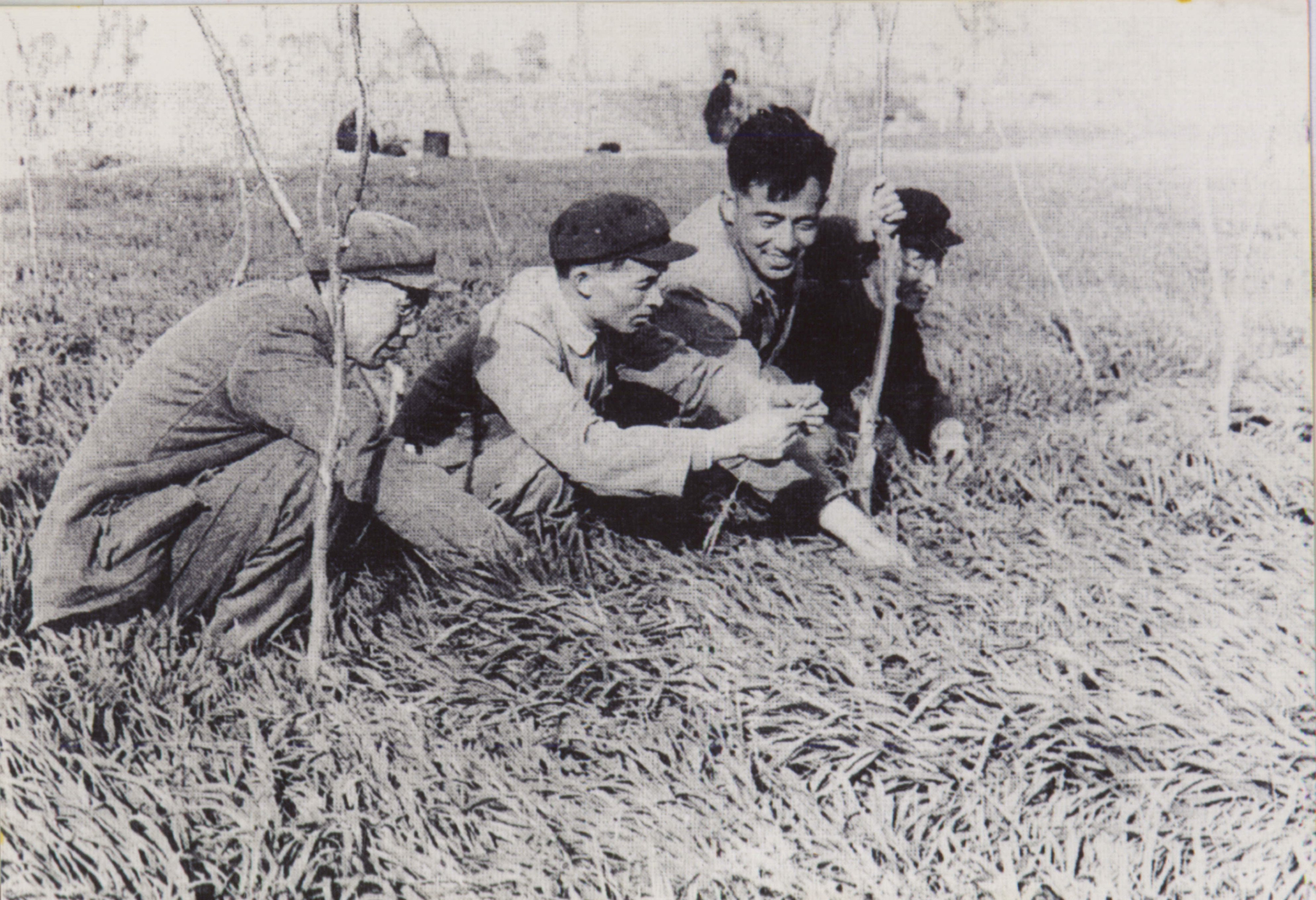 • 1959年施平(左二)和叶和才教授(左一)等在河北徐水县下放点检查工作