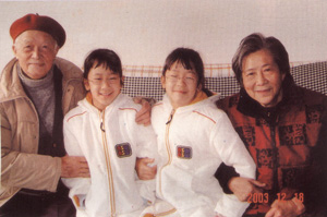 2003年12月18日施平和一对双胞胎孙女合影
